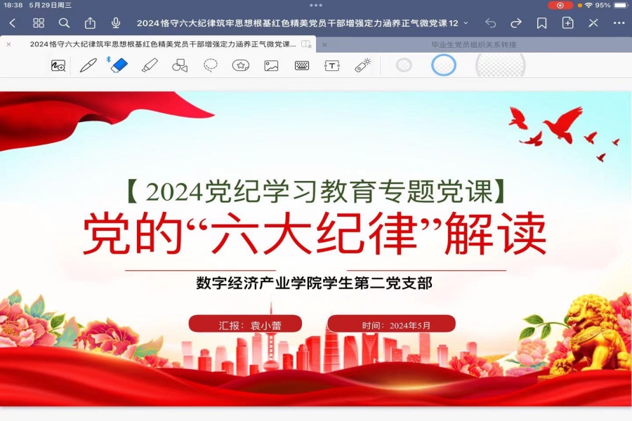 为深入贯彻习近平总书记关于党纪学习教育的重要讲话和重要指示精神,加强党员纪律意识和党性修养,扎实推进党纪学习教育走深走实。太阳集团tyc4633员工第二党支部于5月29日在腾讯会议开展“深化党纪学习教育,筑牢思想根基”主题党课。本次党课由太阳集团tyc4633员工第二党支部书记袁小蕾主讲,支部全体成员参与此次党课。
