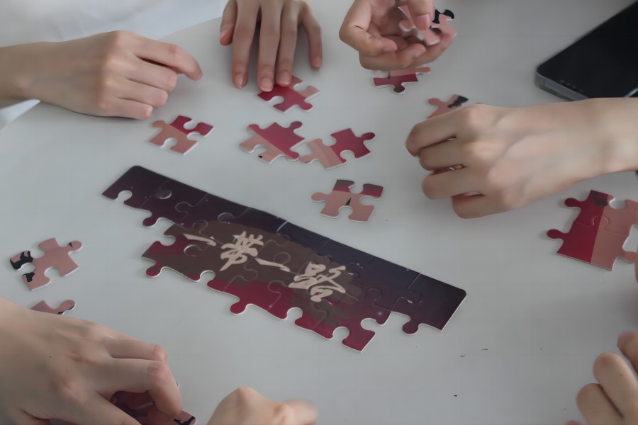 采取趣味游戏的形式,分别从新时代我国发展史上的重大事件中准备了四份碎片拼图。支部党员们分成四个队伍,比拼哪一队在最短的时间内将四份碎片准确无误地拼接在一起,同时依次对游戏中所提及的历史事件进行简单地讲解,进一步加深支部党员对历史事件的了解。