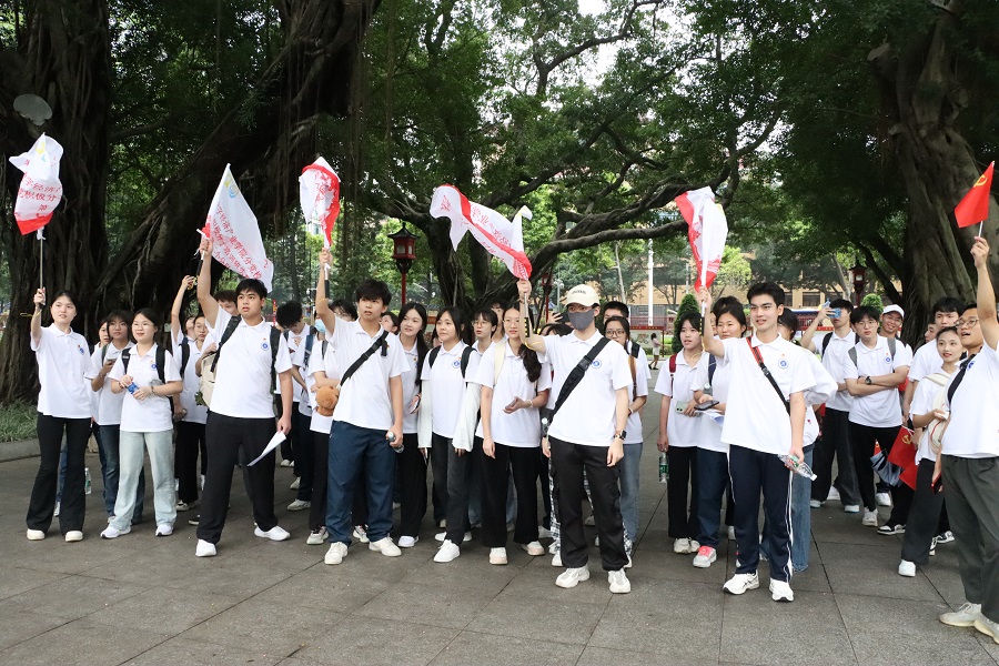 6个实践小分队从中山纪念堂出发,奔赴3个广州红色迹点,以领略革命先烈团结奋斗的精神,完成向先烈致敬、与红色史迹同框、讲英雄故事等沉浸式、体验式的实践课任务。在助理团的引导下,现场气氛高涨,学员们进行党史知识竞答,学员们精神饱满,表现出色,展现出丰富的党史知识储备,巩固和拓展了党史学习教育成果。