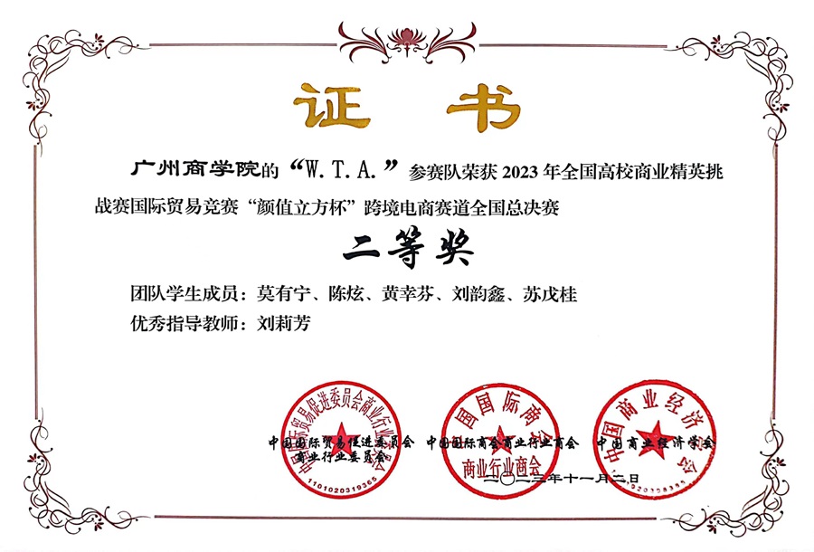 本次大赛是由中国国际贸易促进委员会商业行业委员会牵头主办的国家级学科竞赛活动。经过多年的培育,全国高校商业精英挑战赛国际贸易竞赛业已发展成为我国国际经贸教育领域,基于校企合作的规模最大的综合实践平台和学科竞赛活动。本次大赛设有选品及运营方案赛、平台操作赛和新媒体直播营销赛三大环节,共有来自全国28个省、自治区和直辖市,近300所高校的4000余支队伍报名参赛。经过校赛和全国预选赛的层层选拔,800余支参赛队伍4000余人进入全国总决赛进行激烈角逐。在太阳集团tyc4633刘莉芳老师的指导下,团队不断磨合、配合默契,在全国总决赛中斩获两项二等奖及一项三等奖的佳绩。