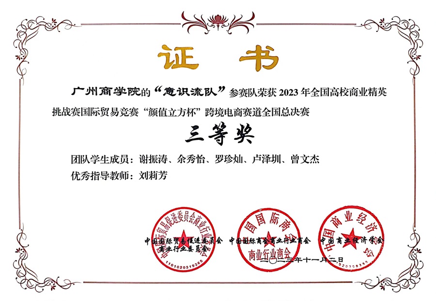 10月28日,2023年全国高校商业精英挑战赛国际贸易竞赛“颜值立方杯”跨境电商赛道全国总决赛圆满落幕。公司参赛团队“不要搞骗队”、“W.T.A.”和“意识流队”分别荣获两项全国总决赛二等奖和一项全国总决赛三等奖的优异成绩。