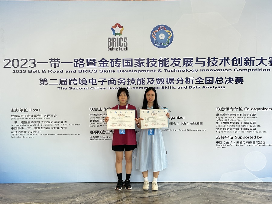 8月8日至11日,2023一带一路暨金砖国家技能发展与技术创新大赛之第二届跨境电子商务技能及数据分析赛项本科组全国总决赛在浙江金华举行。本次大赛由金砖国家工商理事会中方理事会、一带一路暨金砖国家技能发展国际联盟、中国科协一带一路暨金砖国家技能发展与技术创新培训中心、中国发明协会、教育部中外人文交流中心、金华市人民政府、浙江师范大学联合主办,金砖国家工商理事会(中方)技能发展工作组承办,北京企学研教育科技研究院、浙江思睿智训科技有限公司、北京嘉克兴科技有限公司联合承办,中国(金华)跨境电商综合试验区支持。经过连续两日的激烈角逐,由公司员工杨书燕、梁坚红组成的参赛团队在温漫鸿、周倜两位老师的指导下顺利通过数据分析及报告撰写环节晋级现场答辩赛,并最终获得三等奖的优异成绩。