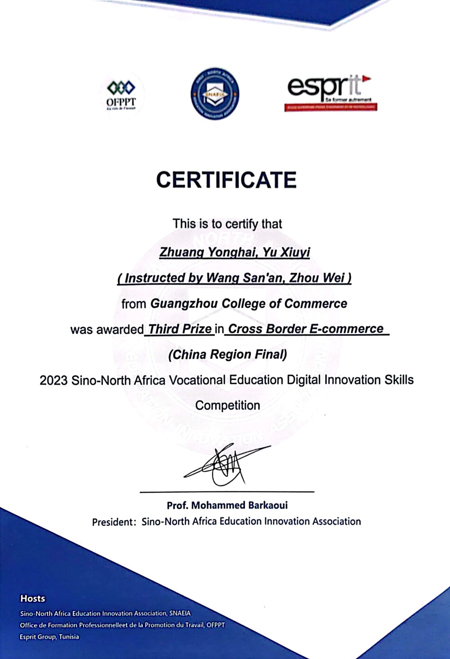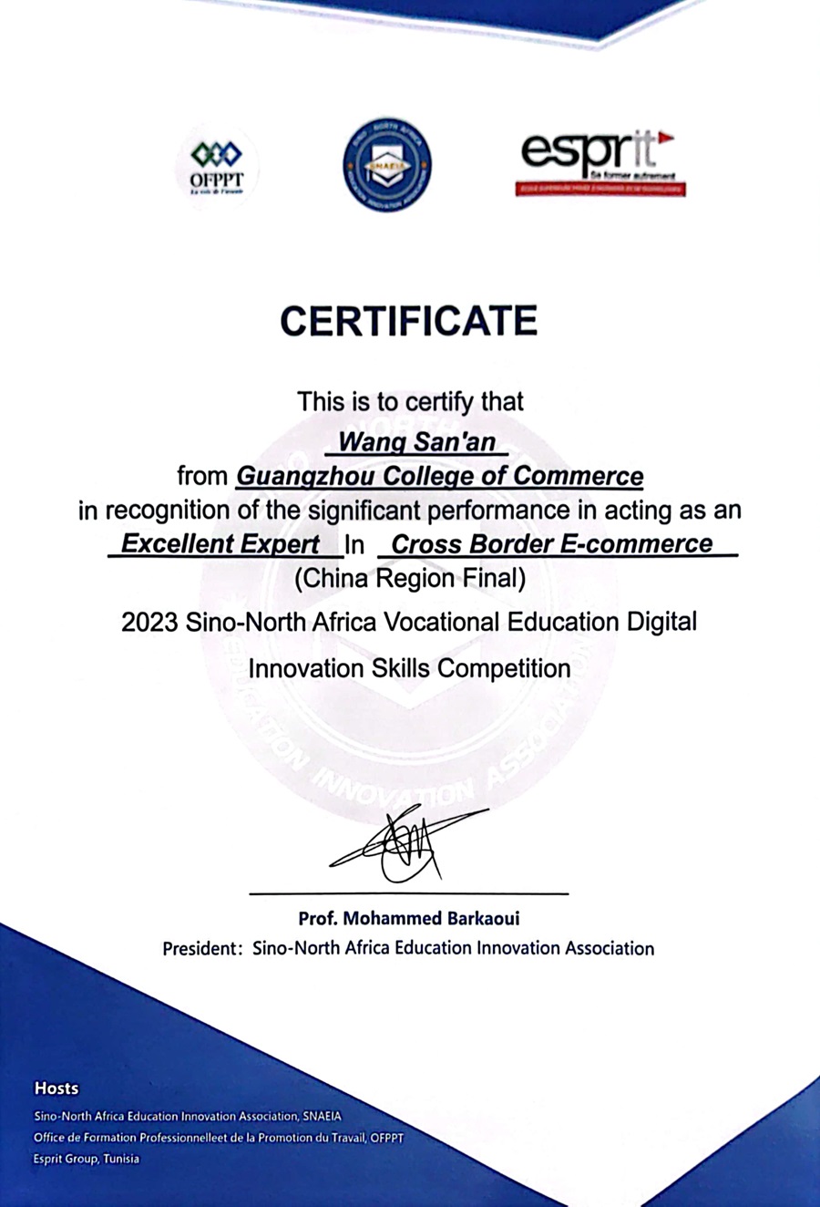 2023年首届中北非国际职业教育数字化创新技能竞赛是在摩洛哥教育部、突尼斯青年与体育部推动和指导下,由中北非国际教育创新联盟(SNAEIA)、摩洛哥职业教育与就业发展办公室(OFPPT)、突尼斯Esprit教育集团联合主办的一项国际级赛事。竞赛分为虚拟现实、增材制造和跨境电商等多个赛项。