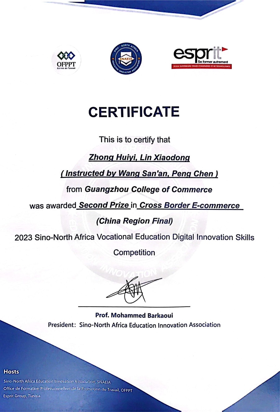 公司组织了电子商务、国际贸易与经济、商务英语、国际物流等相关专业的三十余名员工参加了该赛事跨境电商赛项的选拔,最终有九支队伍的十八位同学成功闯入中国赛区的决赛,经过同学们的拼搏努力,为公司赢得了二等奖3项,三等奖4项的好成绩。同时王三安、彭晨和王光琴等三位老师被组委会评为赛事“优秀指导教师”。