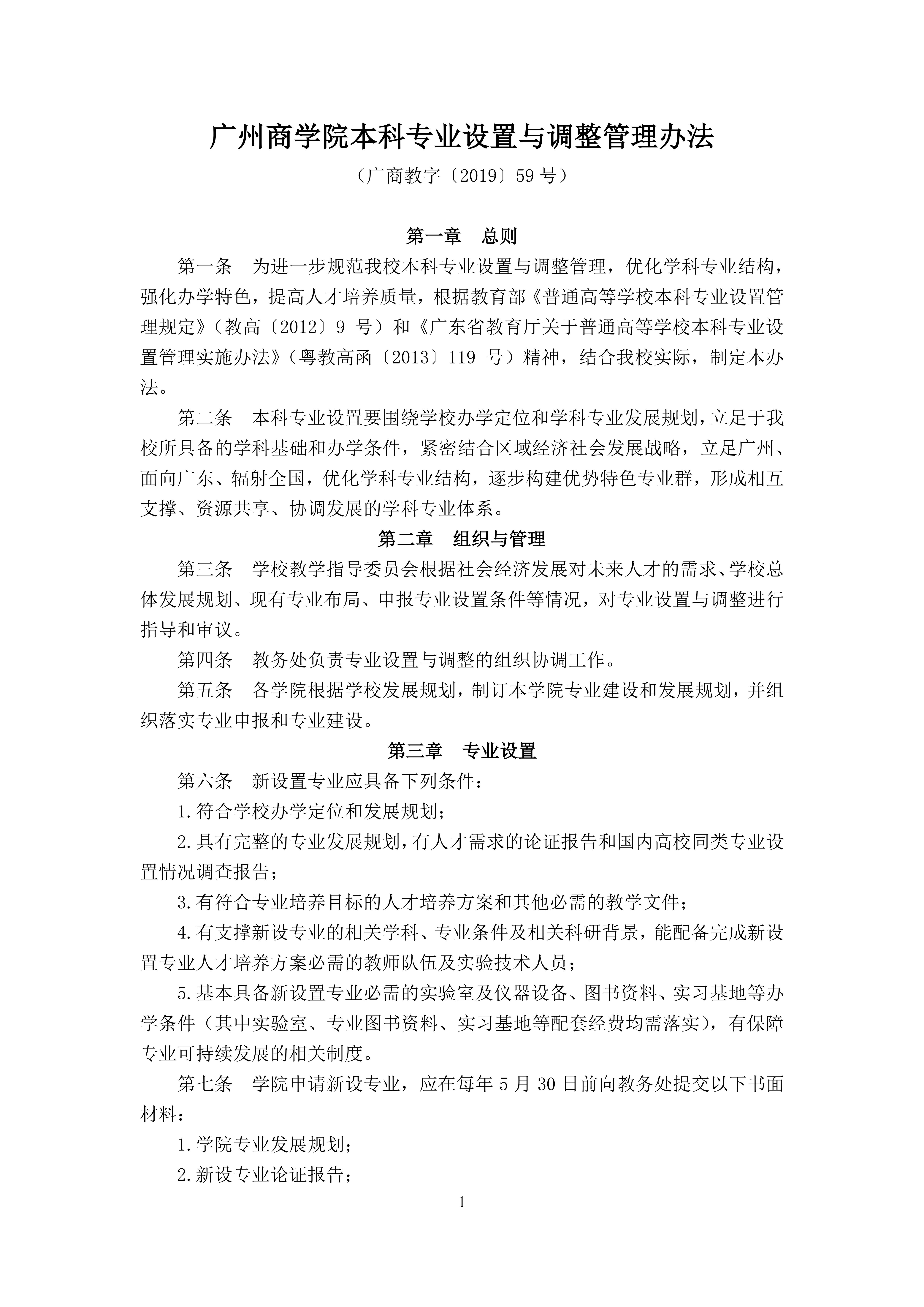 太阳集团tyc4633本科专业设置与调整管理办法(广商教字〔2019〕59号)