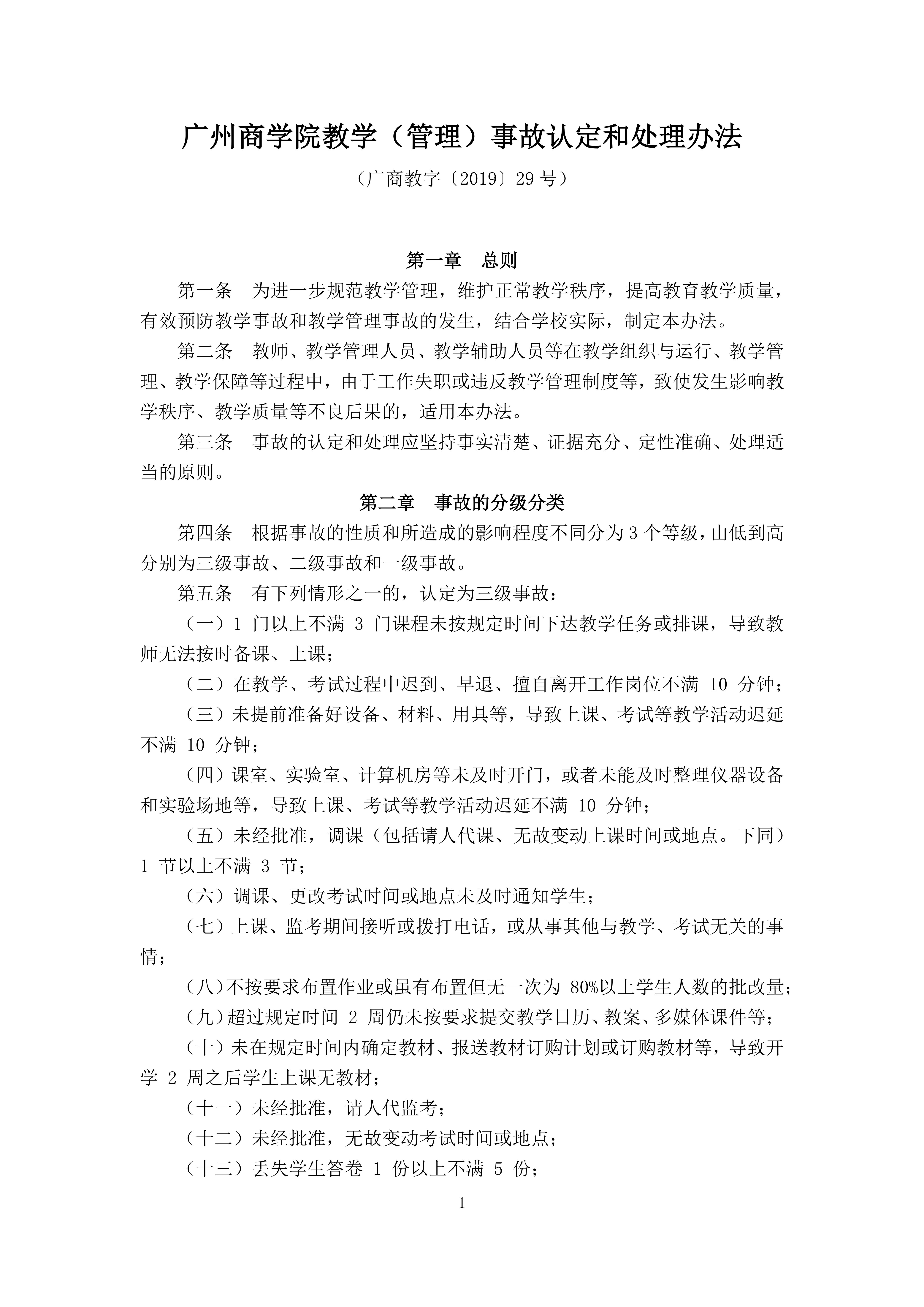 太阳集团tyc4633教学(管理)事故认定和处理办法(广商教字〔2019〕29号)
