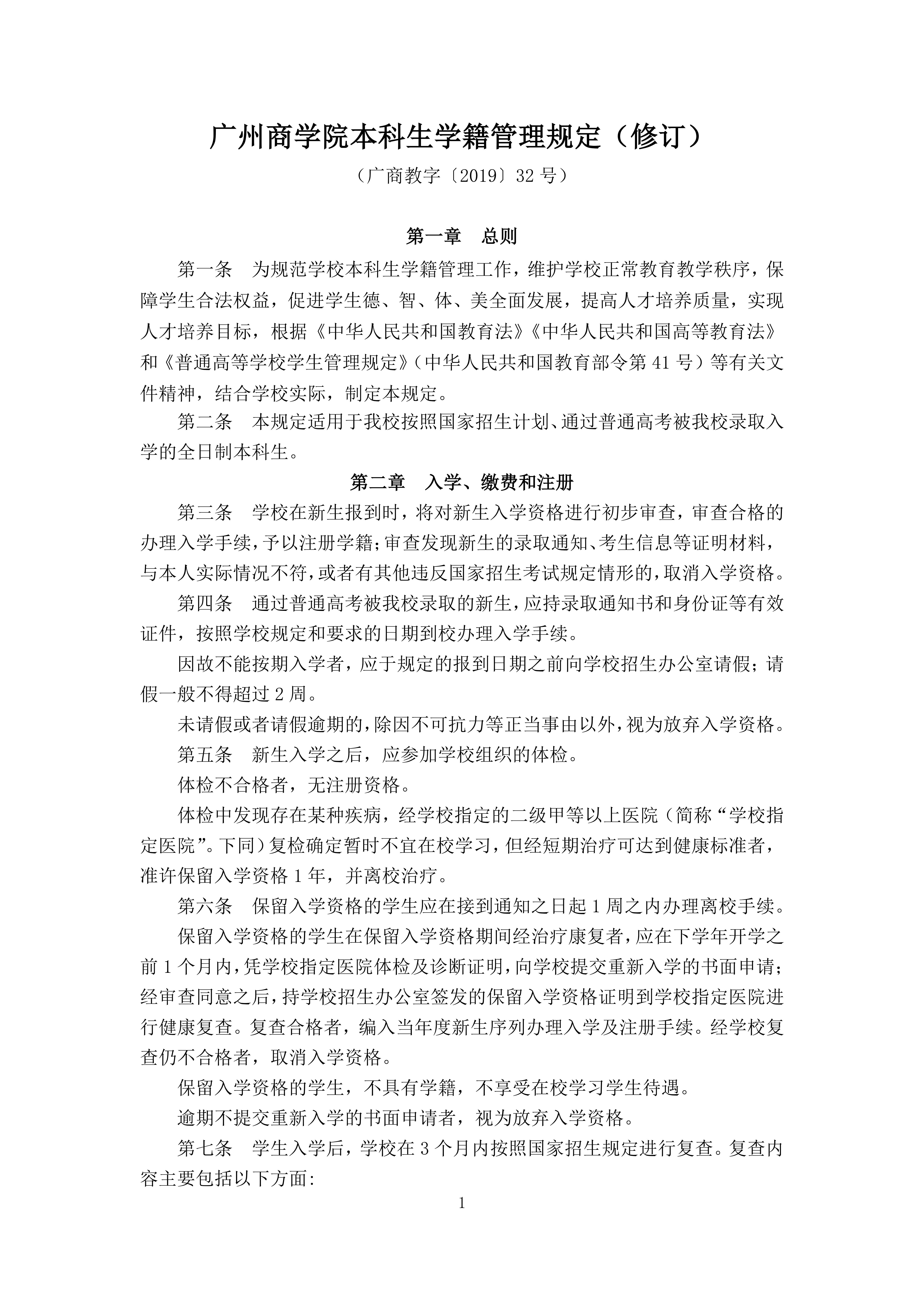 太阳集团tyc4633本科生学籍管理规定(修订)(广商教字〔2019〕32号)