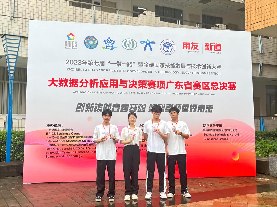 11月11日,公司员工许奕、张驰、李静怡和信息工程与技术学院员工林镇参加了2023年第七届一带一路暨金砖国家技能发展与技术创新大赛大数据分析应用与决策赛项——广东赛区总决赛,并获得该赛项本科组营销赛道三等奖的优异成绩。