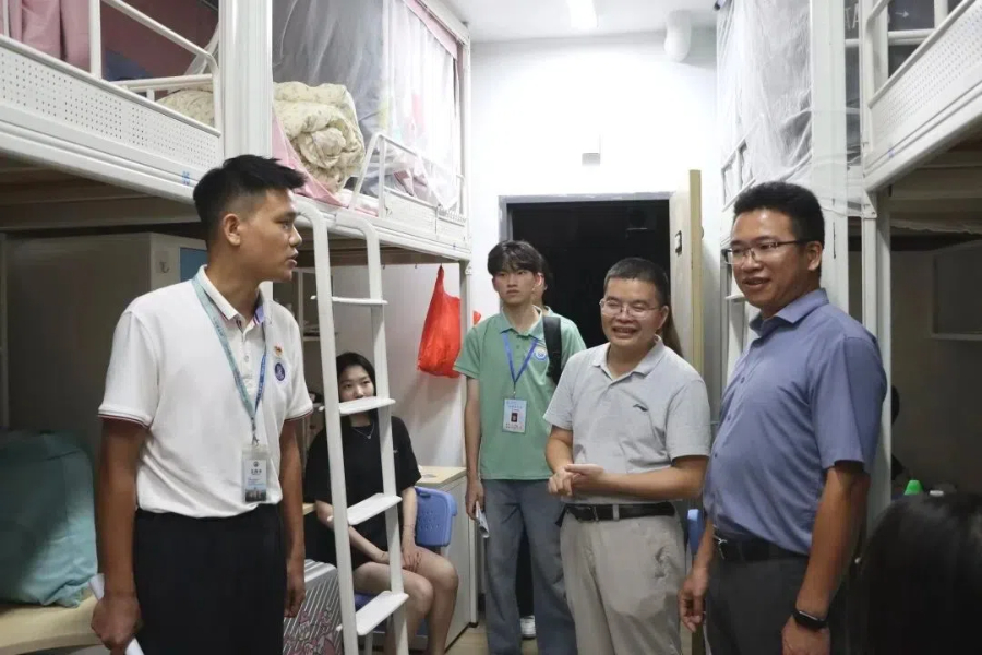 走访过程中,学院领导与新生们进行深入的交流,了解新生入校的基本情况,他们的言辞中满溢着对同学们的殷切期望与热忱鼓励。舒光美首先表达了对新生们的热烈欢迎,他特别关心每位新生的适应状况,鼓励同学们尽快适应校园生活,以崭新的风貌开启新学期的生活,并希望新生们充分结合学院特色,将所学知识运用到实际中,为将来的人生道路奠定坚实基础。此外,辅导员还特别强调了宿舍用电安全、防诈知识学习、个人财产安全等方面,提醒同学们提高安全防范意识,共同营造一个安全、和谐、健康的校园氛围。