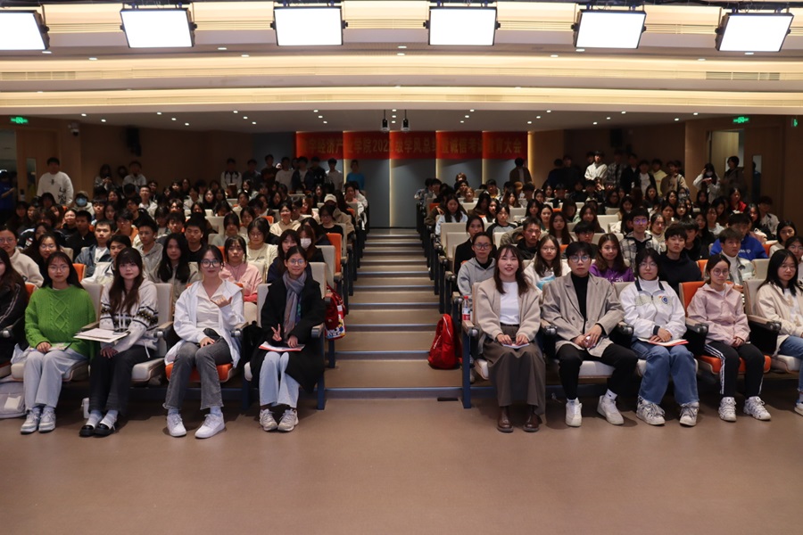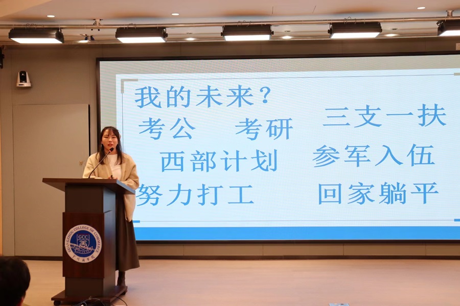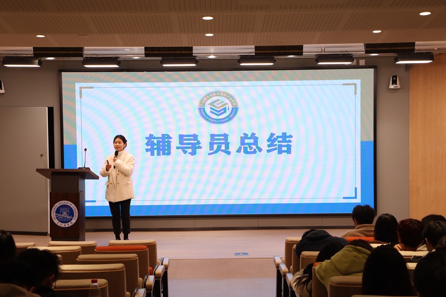 杨丹铭、陈雅玲从学科竞赛、考研、考公、基层就业以及应征入伍等方面内容做了详细的讲解,帮助同学们学会如何做好自身的职业规划,在各自的赛道上跑出属于自己的精彩,最终寻找到属于自己“最好的出路”,并对本次会议进行总结:本次表彰大会的召开,既是总结,也是激励,希望全体同学能够向优秀榜样学习,正视不足及时改进,明确目标,同时向同学们提出三点要求:一是要严肃对待期末考试,合理安排复习时间,保持端正的考试心态,严守考风考纪;二是要提高个人安全意识,谨防诈骗,时刻铭记安全第一,包括离校安全、交通安全、社会实践安全、居家安全、个人财产安全等;三是要努力奋斗,开创未来,在新的一年,希望同学们能不断加强自身建设,向榜样看齐,树立大学目标,争做时代新人。