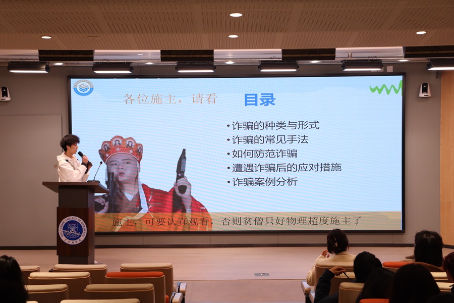 柳懿倪结合往年所出现的考试违纪事例,从考试作弊的心理、行为、后果及员工考试违规处理办法进行讲解,着重指出建设考风考纪的关键性和重要性。随后,曾德杰、郑文年分别从预防传染病、交通安全、用火用电、网络安全、食品安全、财产安全等方面强调:即便在假期中,也务必提高安全防范意识。另外,郑文年采用生动有趣的手法向大家展开《防范诈骗,你我同行》的防诈骗主题教育的宣传,他通过讲述各种防诈骗案例向同学们说明防诈骗的重要性,呼吁大家提高防诈骗意识。