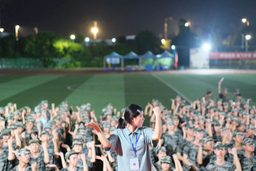 一个个手语动作表达了对国家的炽热情感,歌声嘹亮,气势磅礴。谱写青春壮歌,共抒报国情怀,学子们在手指的一顿一挫动作细节中传递一颗颗赤诚的爱国之心,军训的意义不仅仅在于强健体魄,更在于给青春注入责任与担当的靓丽底色,每一个动作背后都是无数汗水的付出,都是无比的热爱和坚定的信念。