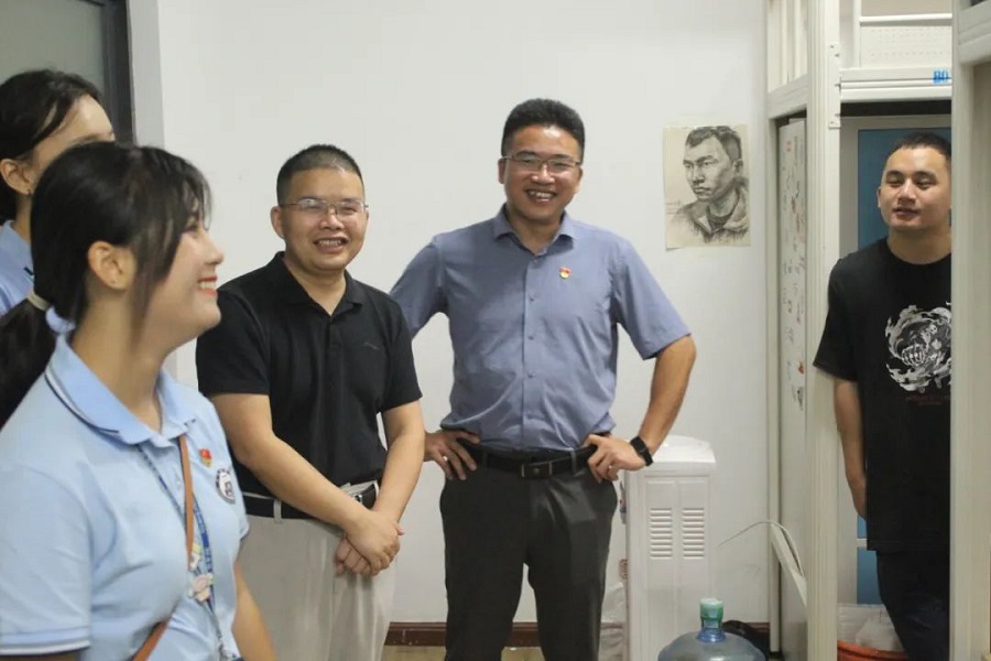 走访活动中,领导与同学们亲切交谈,详细了解新生入学后遇到的困难和生活需求,并逐一给予了针对性指导。舒光美首先对同学们的到来表示热烈的欢迎,她鼓励同学们之间多沟通交流、多互相帮助,尽快适应新校园、新生活,在学习方面,要树立明确的奋斗目标,科学规划老员工涯,珍惜时光、刻苦奋斗,以积极乐观的心态融入校园生活,以崭新饱满的姿态迎接新的大学旅程。