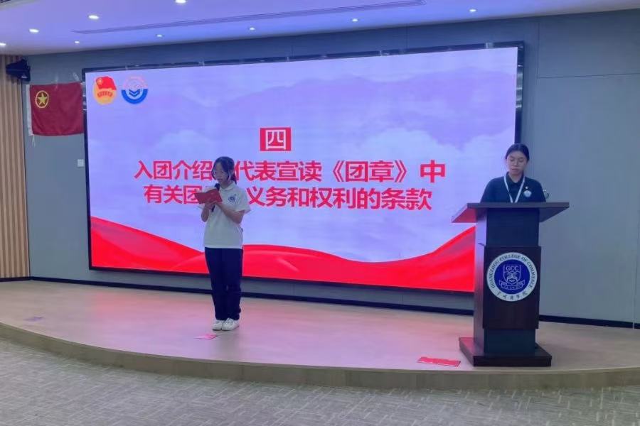 入团介绍人代表梁静琳宣读《中国共产主义青年团章程》