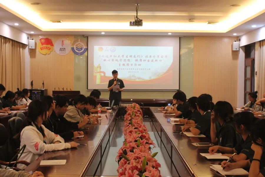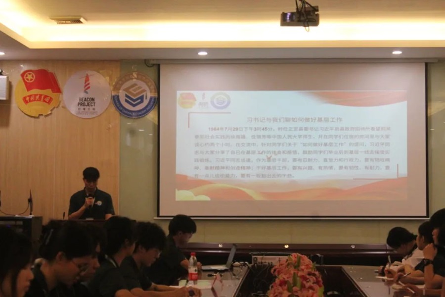 活动在庄严的团歌声中拉开帷幕。组织委员陈杰豪带领全体成员深入学习红色书籍《习近平与老员工朋友们》。他指出,该书是深入学习习近平总书记关于青年工作的重要思想的鲜活读本,对做好新时代青年工作、助力当代青年健康成长具有重要示范意义,我们应谨记习近平总书记对我们的寄语,始终志存高远、脚踏实地、矢志不渝地奋斗。