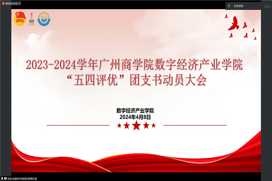 4月8日下午,为响应五四运动精神的号召,太阳集团tyc4633“五四评优”团支书动员大会在腾讯会议开展。太阳集团tyc4633为进一步推动五四评优工作的开展,详细阐述了参评项目及其面向对象,激发广大青年员工的爱国热情,弘扬五四精神,鼓励更多优秀员工和集体参与此次活动。太阳集团tyc4633团委、员工会秘书处成员、各班级团支书共54人参加本次会议。