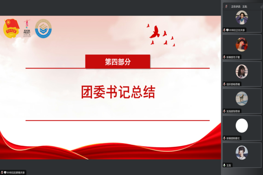 团委各部门总结反思了本月的工作成果与不足,就近期的工作中存在的问题进行交流研讨和总结,对在工作中需要改进的部分提出改进措施和意见,并作出了下一阶段的工作展望,为今后团委各部门的工作顺利开展打下了坚实基础。