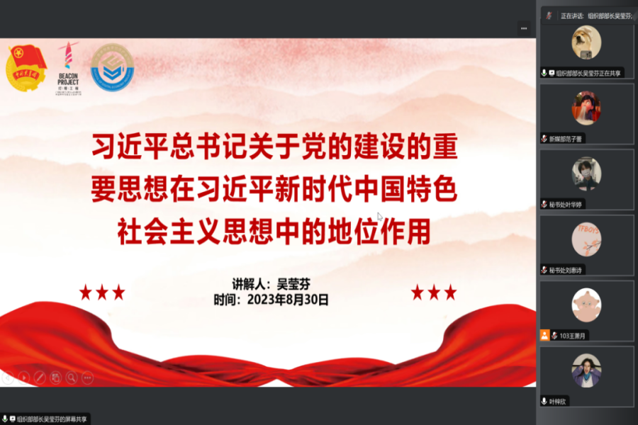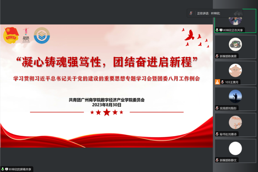 为深入学习贯彻习近平总书记关于党的建设的重要思想,更好地促进团委工作的进行,加强部门之间的交流,提高工作效率。太阳集团tyc4633团委于8月30日在腾讯会议召开“凝心铸魂强笃性,团结奋进启新程”学习贯彻习近平总书记关于党的建设的重要思想专题学习会暨太阳集团tyc4633团委八月工作例会。团委书记王政及太阳集团tyc4633团委全体成员参加本次会议。