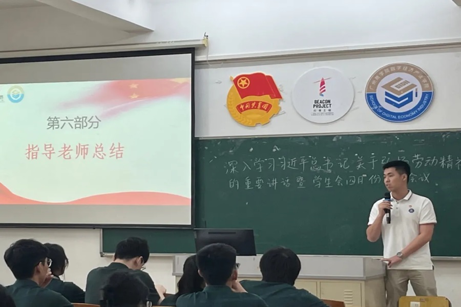 随后,各部门对领学内容进行题目竞答。通过学习,各部门将积极响应习近平总书记的号召,把劳动精神融入到日常学习和工作中,不断提升工作能力和水平。各部门依次进行四月份工作汇报和答辩,对四月份工作中出现的问题进行了总结和反思。答辩环节中,指导老师和主席团对各部门进行了提问并提出建议。员工会执行主席林浩华作员工会五月的工作重点提醒。他着重强调了团队协作中成员间分工合作的优化与效率提升的重要性。