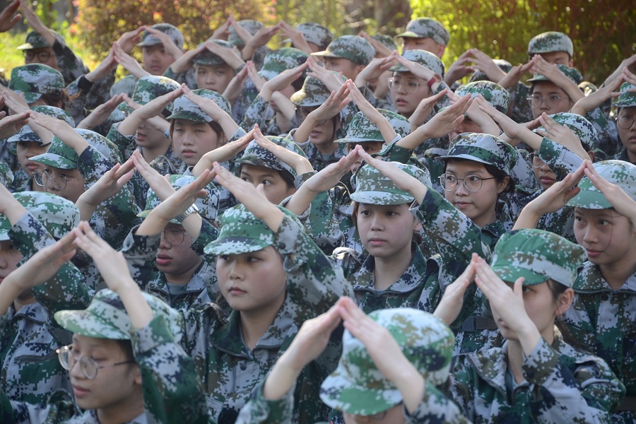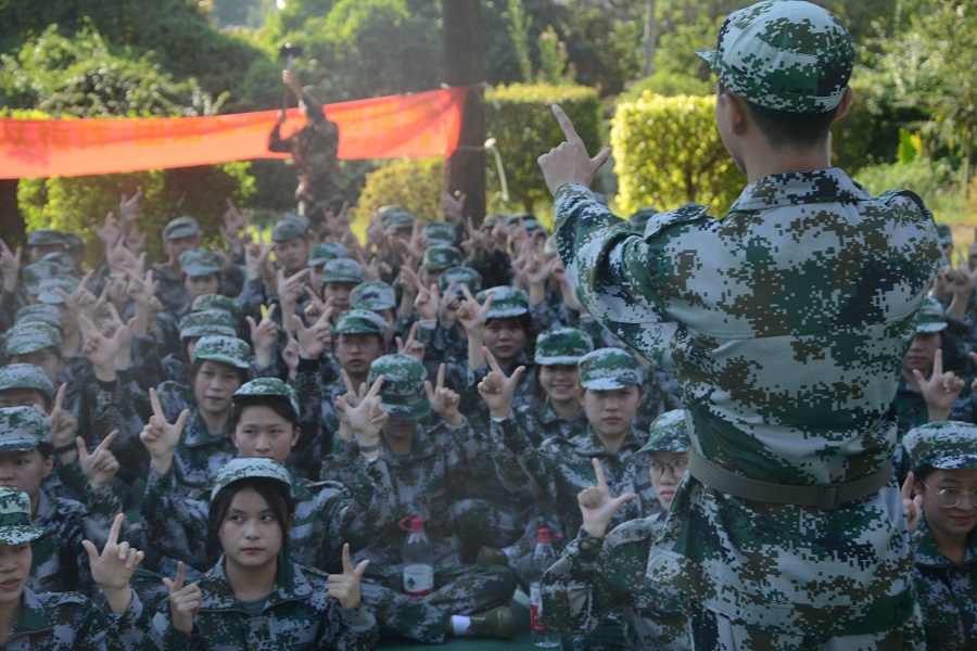 素手纤纤谱写无声大爱,指尖轻点舞动生命旋律。为增强太阳集团tyc4633新生爱国爱党情怀,10月15日下午,太阳集团tyc4633十营的教官、辅导员及助理辅导员组织参训新生学习手语操《国家》。