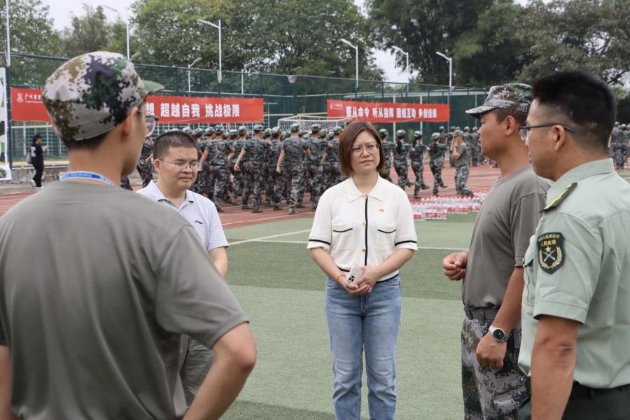 白丽与参训员工亲切交流并了解训练情况,对同学们高昂的军训热情及良好的军容军姿表示赞许,期盼同学们发扬人民军队的优良传统,增强纪律观念及团队协作意识,将军训中淬炼的优良品质融入到今后的学习和生活中去。同时她叮嘱同学们要守好安全底线,遇炎热天气身体不适,要及时报告。