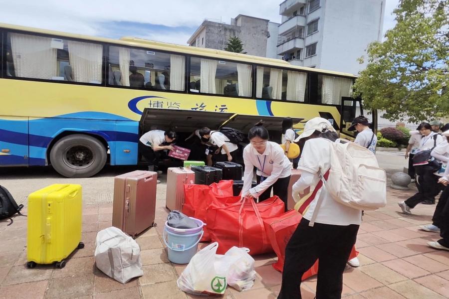 抵达目的地后,同学们纷纷搬运物资和行李,前往宿舍入住,准备后期实践活动的开展。