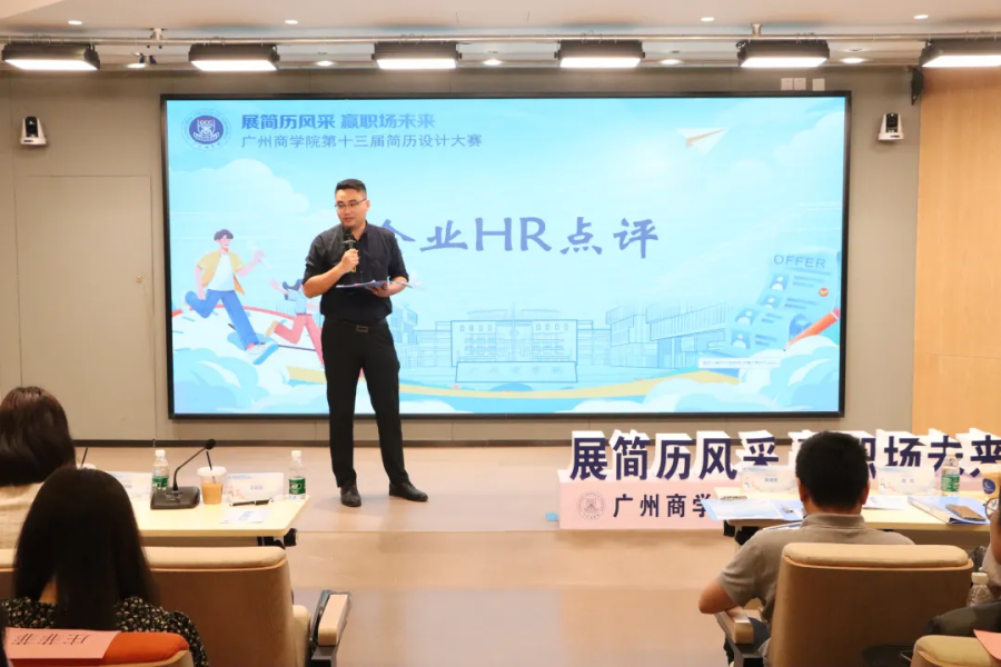 在大赛的尾声,领导及嘉宾为获奖选手们颁发了荣誉证书和奖品。南堃投资集团创始人、现任执行董事、2014届外国语学院德语专业毕业生李嘉聪对选手们的表现进行了细致入微的点评。他强调了简历排版的重要性,并指出了部分选手在简历设计上的不足。同时,他也建议选手们在未来的简历讲解中,更加注重实践工作内容的展示,以更全面地体现自己的技能、经验和优势,从而提高在就业市场中的竞争力。