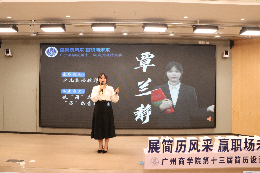 大赛伊始,主持人对本次大赛规则进行了简单介绍。本场比赛以模拟面试的形式开展,分为选手展示、答辩及企业HR录用意向确认三个环节。在自我展示中,每位参赛选手都以自信的姿态登上演讲台,用流畅的言辞和专业态度为观众呈现了一场简历视觉与才华的盛宴。他们凭借深厚的专业素养和丰富的实习经验,全方位地展示了各自的才华与潜力。