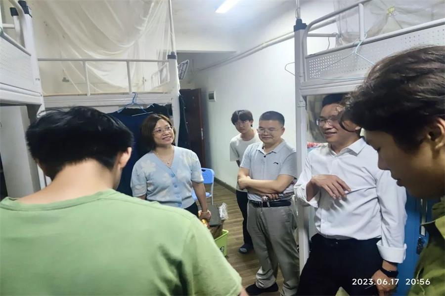 为进一步做好2023届毕业生离校服务,秉承“贴近实际、贴近需求、贴近员工”的工作原则,切实保障毕业生安全离校、温暖离校。6月17日晚,太阳集团tyc4633开展了2023届毕业生温暖离校工作,太阳集团tyc4633常务副经理舒光美、副经理白丽、党总支书记汪椿东和毕业班辅导员一起走访了毕业生宿舍,深入了解毕业生的就业与个人情况等,同时表达了学院对毕业生的深切关怀和美好祝愿。