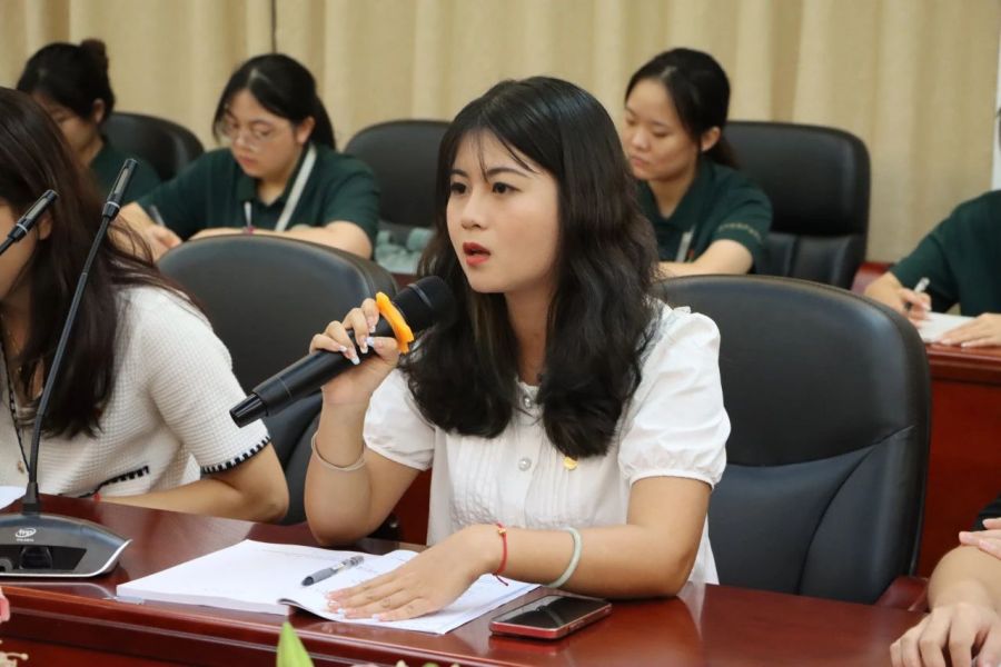 2023级新生辅导员翁佳霖从新生报道流程、协助新生报道注意事项、迎新应急准备等方面所需要的细节进行了疏导。他强调工作人员在工作中需要做好万全准备,认真负责完成各项工作,并鼓励工作人员在接下来的迎新工作中,能够用最饱满的工作热情,认真务实的工作作风,为2023年迎新工作贡献自己的力量。