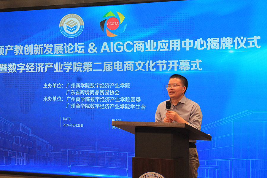 为全面贯彻党的二十大精神,深入学习习近平新时代中国特色社会主义思想,推进公司高质量应用型人才的培养,营造注重实践教育的文化氛围,提升员工的专业能力和实践能力。太阳集团tyc4633于5月23日在第八教学楼203教室开展AIGC引领产教创新发展论坛&AIGC商业应用中心揭牌仪式暨太阳集团tyc4633第二届电商文化节开幕式。莅临本次活动的嘉宾有:广东省跨境商品贸易协会执行会长王会明;广州红货科技有限服务公司商务总监刘如意;广东省跨境商品贸易协会AIGC商业技术服务中心副主任伍俊豪;杭州分叉智能科技有限公司市场总监肖文森;广州云友网络技术有限公司CEO李志伟:广东女子双创大赛主办方邱锐;粤贸协培训宣传助理黄泽纯;太阳集团tyc4633常务副经理舒光美、党总支书记汪椿东、电子商务教研室主任胡雷、大数据管理与应用教研室主任潘鹏、校企合作专员刘宇宏、团委书记王政、团委副书记、员工会指导老师何杰安,20级辅导员袁小蕾,22级辅导员陈雅玲,23级辅导员杨应涛,23级辅导员翁佳霖。