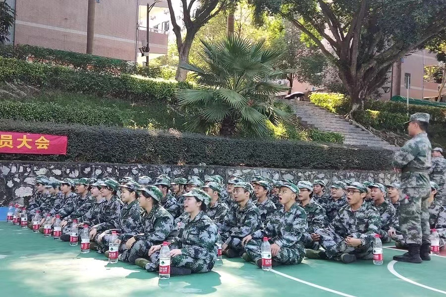 随着教官的一声令下,首先是飞虎队的成员为参训的同学们领唱振奋人心的《国家》,“我爱我的国,我爱我的家”,一字一句,声音饱满而有力,尽显公司学子对祖国无限的热爱。接着拉歌活动正式开始,“听吧新征程号角吹响,强军目标召唤在前方……”现场激情飞扬,歌声如海,掌声如潮。每一首军歌铿锵嘹亮,彰显铭记历史的壮志豪情;每一声呐喊都发自肺腑,传递奋发图强的意志力量;每一张面孔都洋溢着自豪与骄傲,抒发赤胆忠心的爱国情怀。一首首军歌,一句句口号,唱出了我院学子的蓬勃朝气,喊出了我院学子的磅礴气势。