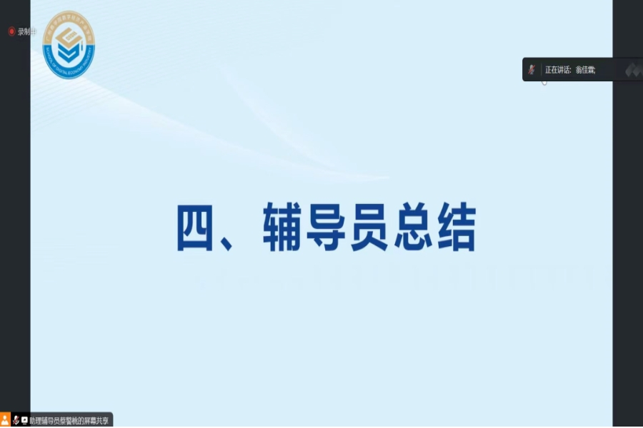 翁佳霖对此场培训进行总结,并对全体助理辅导员提出三点要求:一是助理辅导员要不断学习、不断提高自身综合业务水平,用扎实的工作能力和积极的精神风貌来迎接新生的到来;二是助理辅导员要端正态度,不断发挥榜样作用,助理辅导员是新生来到公司的“第一印象人”,要以自身言行树立良好的榜样作用;三是助理辅导员要熟悉学院及专业特色,在服务新生的同时做好专业认知教育,加深新生们对学院的认同感和归属感。