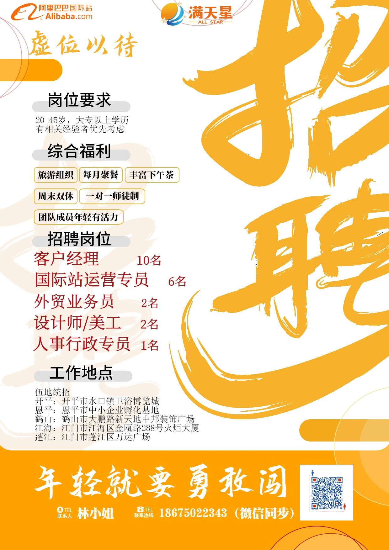 满天星(江门)企业服务有限公司是阿里巴巴国际事业部在江门五邑地区的第一位官方合作伙伴,服务于阿里巴巴国际站外贸企业,协助本地企业打造互联网外贸渠道,实现外销转型升级。